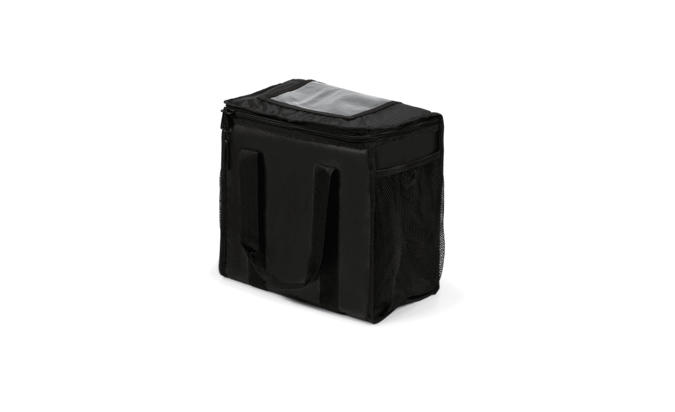 Ce sac de livraison solide, d'une capacité de 19 litres, est idéal pour les petites commandes. Les sangles de transport extra-larges sont cousues sous le sac et la fermeture éclair extra-épaisse fournit une résistance supplémentaire au sac. Il y a des poches de chaque côté du sac pour transporter des articles supplémentaires. Le sac est isolé par de la mousse et un film qui garde vos produits à la fois froids et chauds et est facile à nettoyer. Vous pouvez facilement emporter vos bons de livraison dans le compartiment transparent situé à l'intérieur. Après utilisation, le sac est facile à plier pour faciliter le rangement.